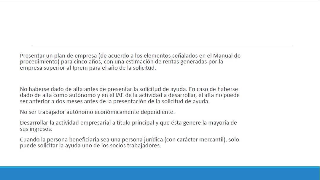 Se trata de una ayuda de entre 10.000 y 16.800 euros, siendo una iniciativa muy positiva para los GAL. Una nueva línea que se implementa en esta convocatoria, aunque en un principio con un aire un poco conservador de cara a ver el feedback y la mejora que se pueda necesitar implementar. Va dirigido a aquellos proyectos que antes quedaban fuera por baja inversión, por debajo de los 5.000 euros. Los requisitos exigidos se pueden ver en las siguientes diapositivas.