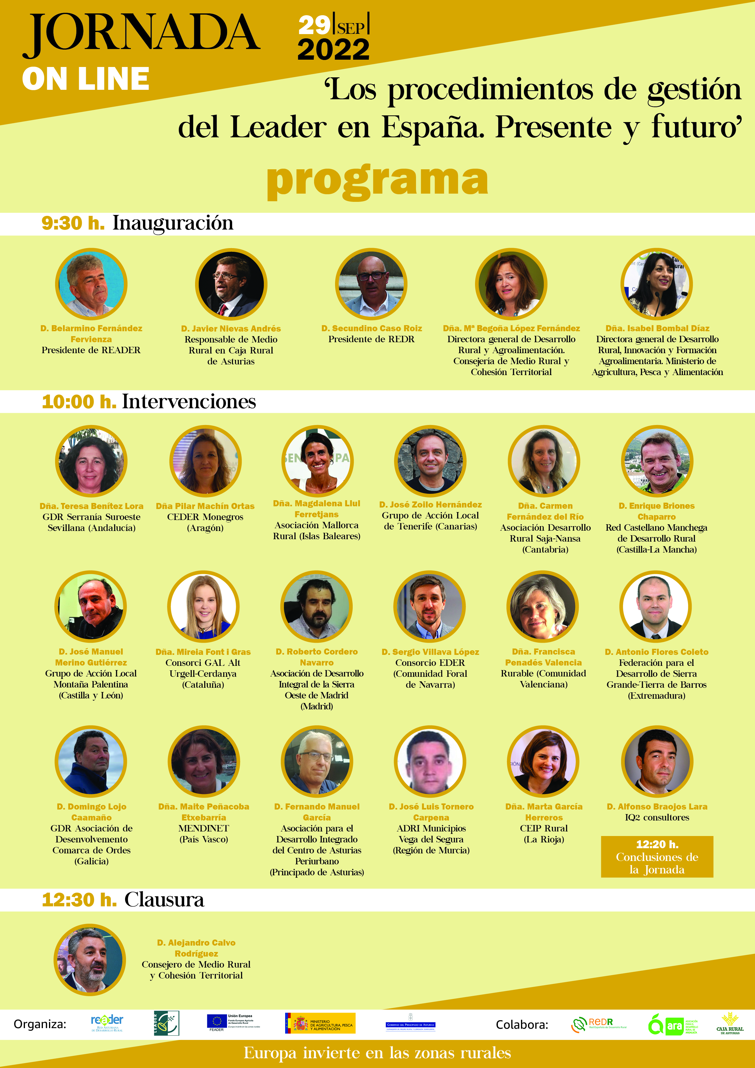 Os dejamos el vídeo completo de la jornada online 'Los procedimientos de gestión del Leader en España. Presente y futuro', organizado el pasado 29 de septiembre por la Red Asturiana de Desarrollo Rural (READER) y la colaboración de la Asociación para el Desarrollo Rural de Andalucía (ARA). Para su desarrollo contamos con la participación de las diecisiete redes autonómicas y sus grupos de desarrollo, así como de la Red Española de Desarrollo Rural (REDR), la Consejería de Medio Rural y Cohesión Territorial y el Ministerio de Agricultura, Pesca y Alimentación.