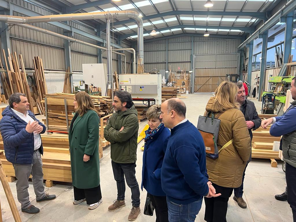 El consejero, acompañado de la directora general de Desarrollo Rural y Agroalimentación, Begoña López, visitó las instalaciones de la empresa Proyectos Claudin 4D, en el polígono industrial de Jarrio (Coaña), creada en 2016 con dos líneas de negocio: la carpintería de madera especializada en la fabricación de ventanas y la comercialización al por mayor de productos de la construcción.