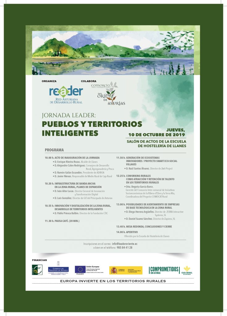 La Red Asturiana de Desarrollo Rural (READER) y la Asociación para el Desarrollo Rural Integral del Oriente de Asturias (ADRIOA) han organizado la Jornada LEADER 'Pueblos y territorios inteligentes' el próximo jueves 10 de octubre, a partir de las 10.00 horas de la mañana, en el salón del IES de Llanes. Este encuentro tiene como objetivo impulsar la transformación digital en el medio rural asturiano ante las oportunidades que plantean las nuevas tecnologías y la futura implantación del 5G para el desarrollo de los territorios rurales.