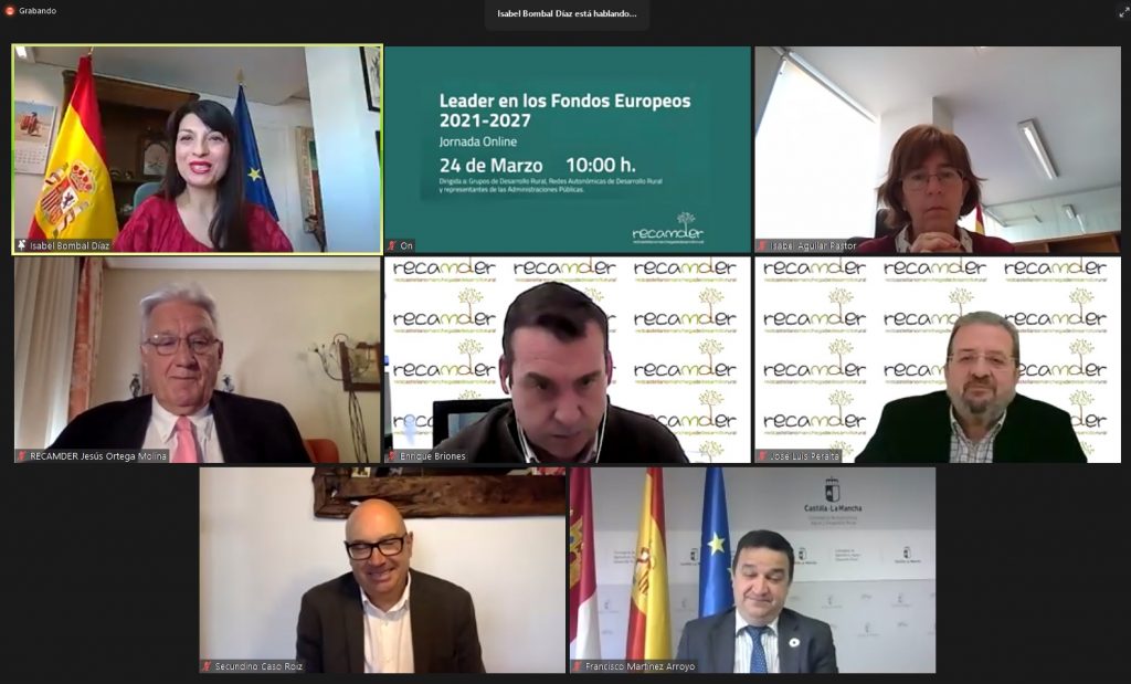 Casi 600 personas de toda España participaron hoy en esta Jornada on line de la red castellano manchega e inaugurada por Jesús Ortega Molina, presidente de RECAMDER; Isabel Bombal Díaz, Directora General de Desarrollo Rural, Innovación y Formación del Ministerio de Agricultura, Pesca y Alimentación; Francisco Martínez Arroyo, consejero de Agricultura, Agua y Desarrollo Rural de la Junta de Comunidades Castilla- La Mancha y Secundino Caso Roiz, Presidente de la Red Española de Desarrollo Rural.