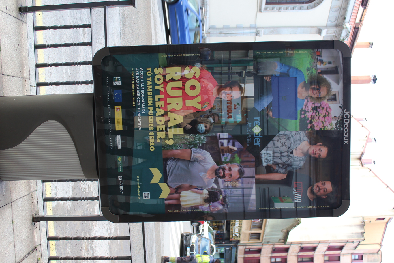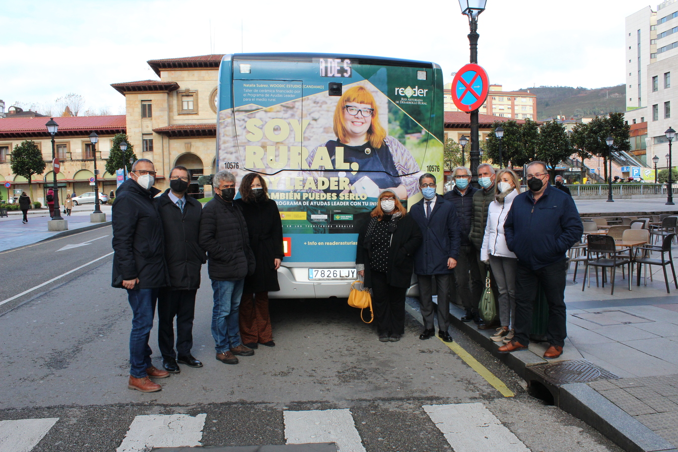 La campaña promovida por la Red Asturiana de Desarrollo Rural (READER) ‘Soy rural, soy Leader’ ya se muestra en veinte mupis y dos autobuses de la ciudad de Oviedo, presentada esta mañana con el objetivo de dar a conocer en la capital asturiana los proyectos que se están llevando a cabo en la zona rural con la financiación de las ayudas Leader, que cumplen una función “importantísima como dinamizadores”, según señaló la directora general de Agroalimentación, Begoña López Fernández.