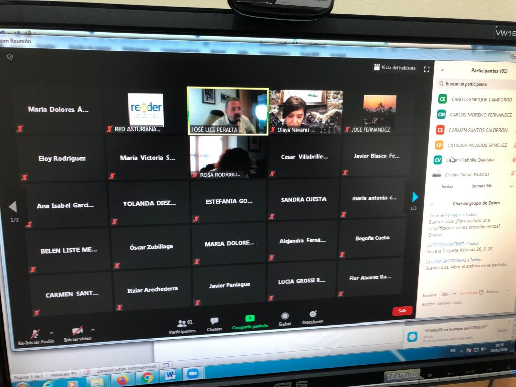 El rol de las tecnologías se ha fortalecido contra el Covid19; y en tiempos de pandemia se imponen nuevas formas de trabajar dentro de las organizaciones. Así, la Red Asturiana de Desarrollo Rural (READER, en adelante) celebró este lunes, día 25 de mayo, por primera vez y haciendo uso de la herramienta Zoom, su primera Jornada on line impartida por José Luis Peralta Pascua, jefe del Servicio Técnico de la Subdirección General de Programación y Coordinación de la Dirección General de Desarrollo Rural, Innovación y Política Forestal del Ministerio de Agricultura, Pesca y Alimentación. Más de setenta participantes, algunos procedentes de otras redes autonómicas, presenciaron esta videoconferencia presentada bajo el título “El LEADER en tiempos del COVID-19”.
