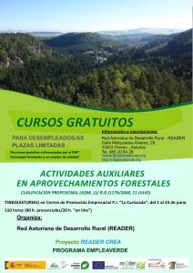 Agricultura Ecológica, en Pola de Lena y Actividades Auxiliares en Aprovechamientos Forestales, en Tineo, Estos son los títulos de los dos cursos que, a partir del 4 de junio, en Lena, y el día 1 de junio, en el concejo tinetense, respectivamente, se impartirán con cargo al proyecto READER CREA que la Red Asturiana de Desarrollo Rural ha puesto en marcha en colaboración con la Fundación Biodiversidad del Ministerio de Agricultura y Pesca, Alimentación y Medio Ambiente. Son cursos gratuitos dirigidos a desempleados/as que incluyen formación presencial y formación on line. Los/as alumnos/as obtendrán el Certificado de Profesionalidad.