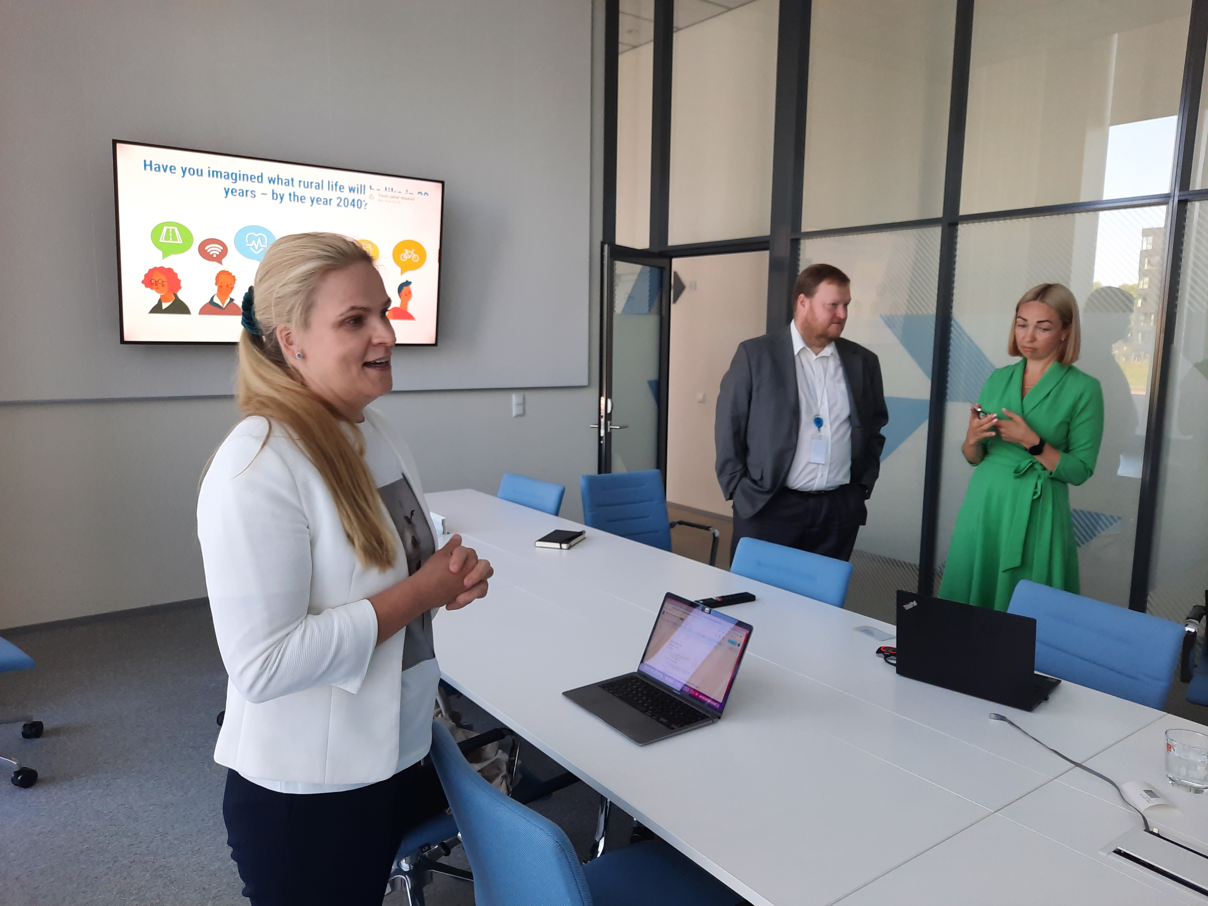 El viaje se realizó entre el 19 y el 26 de mayo, comenzando las visitas el lunes 20 en el Superministerio, un edificio en el que tienen su sede hasta seis ministerios. Aquí mantuvimos una reunión y asistimos al seminario con el director del departamento de Asuntos Regionales, Olavi Petron, la jefa de la sección de Economía Rural y Política de Competencia, Kai Kalmann-Jotautas, ambos del Ministerio de Asuntos Regionales y Agricultura, y la representante del Ministerio de Bienestar Social, Vivia Aunapuu-Lents. También asistió Triin Kallas, de la Unión Estonia del LEADER, así como la gerente del GAL Asociación para el Desarrollo de la Comarca de Tartu, Kristiina Tammets.