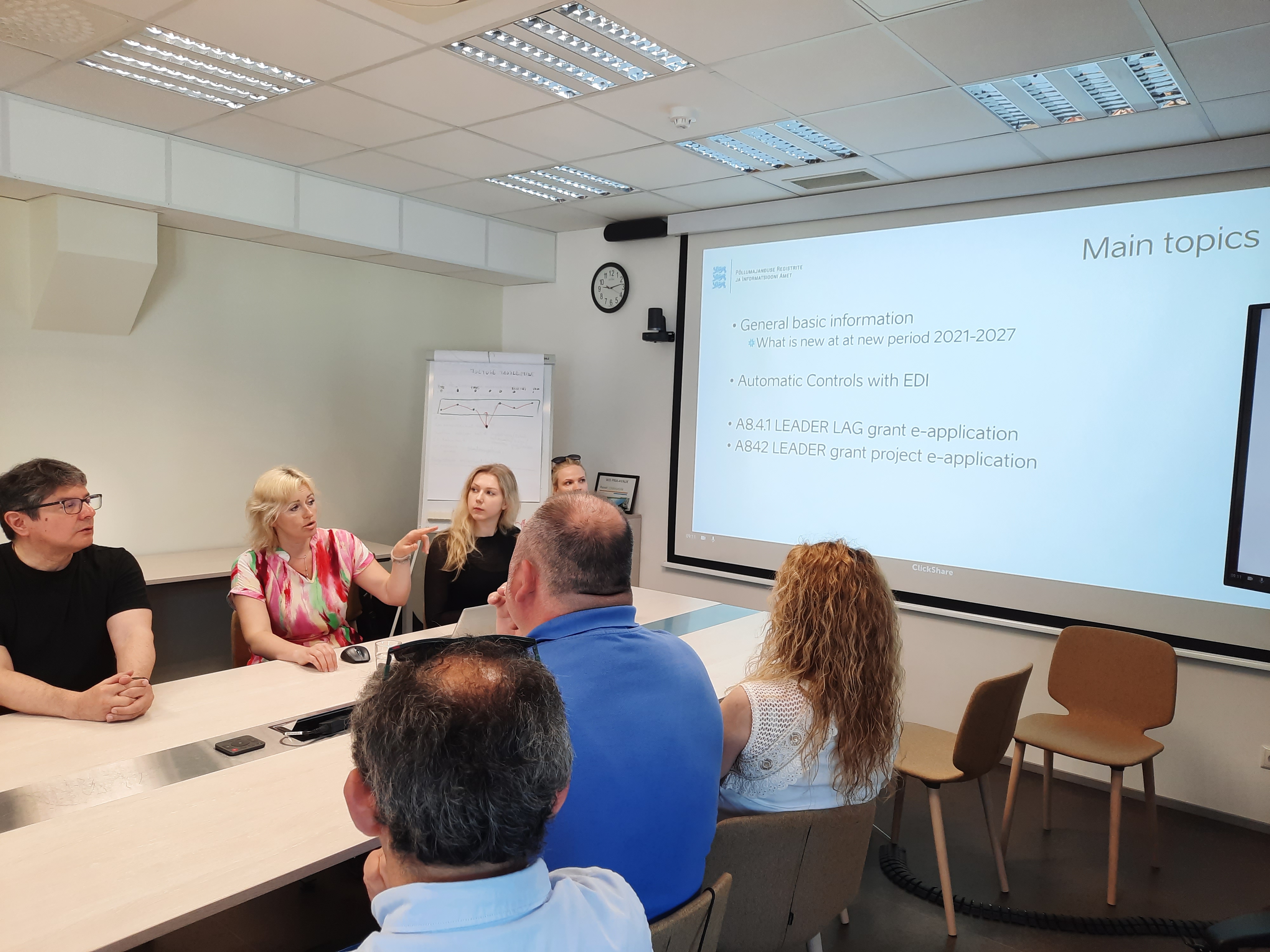 Durante la mañana del viernes asistimos a un seminario en el Consejo de Información y Registros Agrícolas de Estonia (PRIA), organismo pagador del LEADER, ubicado en Tartu y no en la capital Tallin. Allí conocimos la aplicación digital y el sistema de monitorización que emplean, con la participación de Zirlin Raudsik y Ülle Märss, analista de negocio y especialista de desarrollo del PRIA, respectivamente.