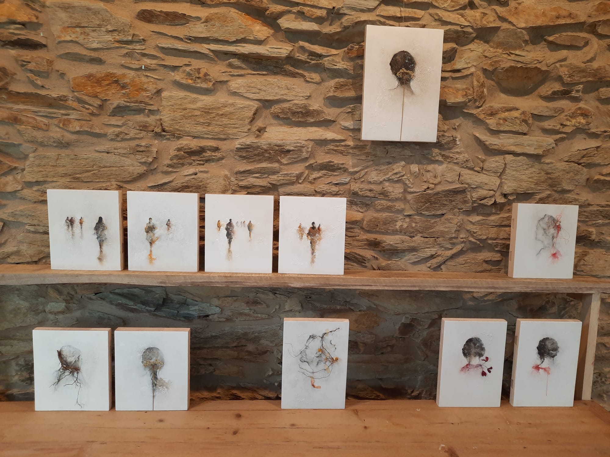 Tanto ella como su marido comparten el amor por Asturias, a donde se escapaban cada vez que podían, aprovechando también que ambos tienen familia aquí. Refiere que tiene la sensación de “vivir en un cuento de hadas por el hecho de vivir aquí por la tranquilidad, el paisaje en sí, muy inspirador”, algo que también ha enriquecido su propia pintura, a la que le incorpora elementos de la naturaleza, la misma que se cuela por las grietas del antiguo pajar rehabilitado que ha convertido en su estudio.